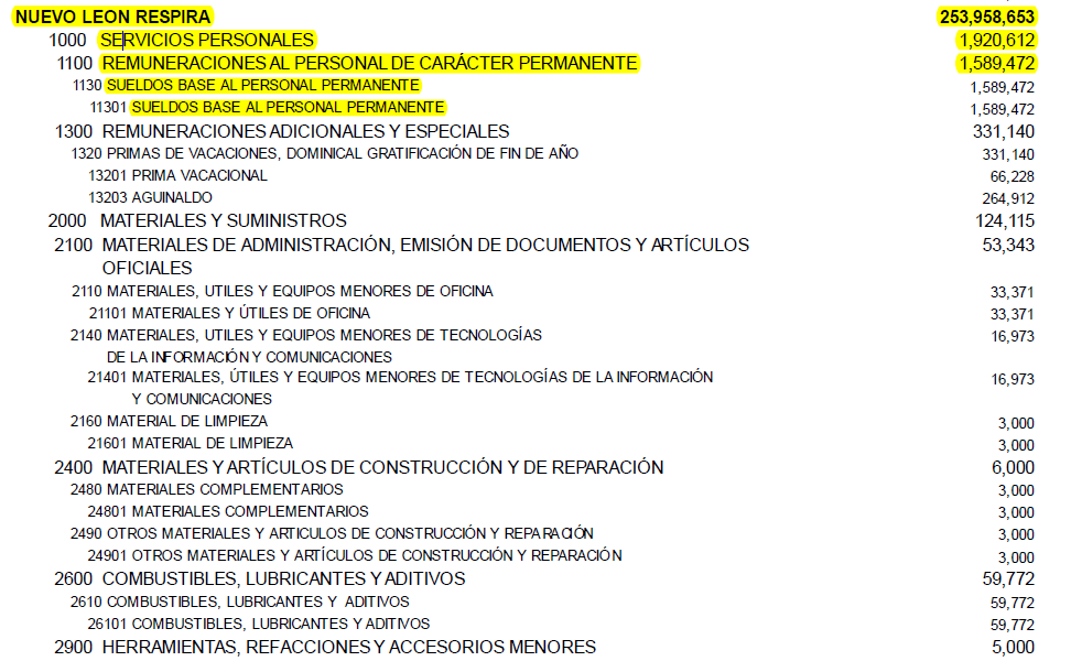 Desgloce Presupuestal del Programa «Nuevo León Respira»